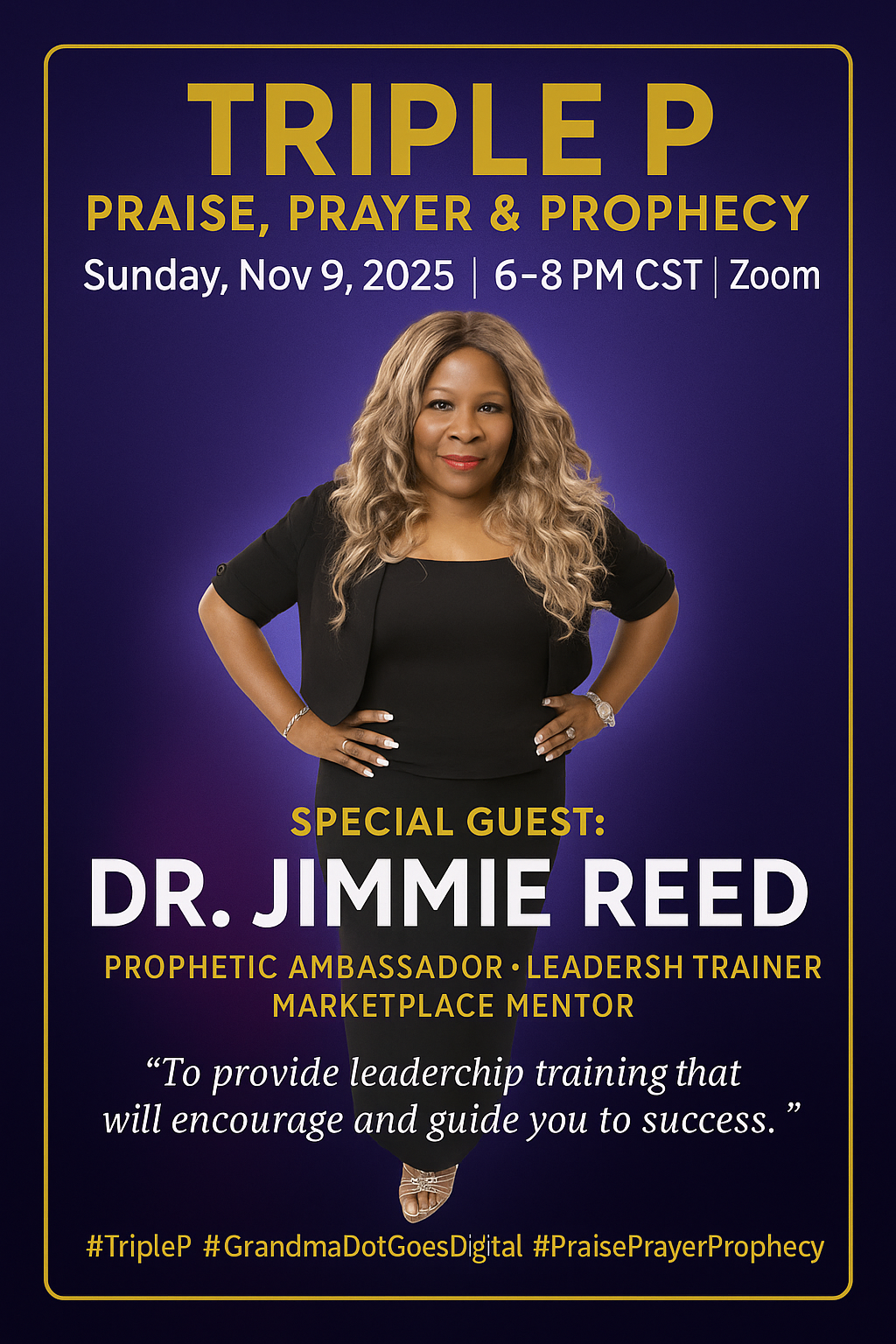 09nov6:00 pm8:00 pmVirtual EventTriple P: Praise Prayer & ProphecySpecial Guest: Dr. Jimmie Reed